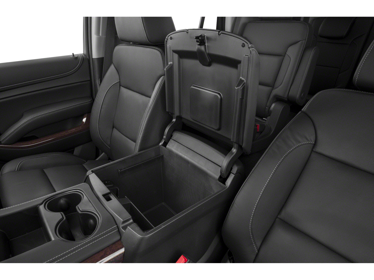 - Console, floor with storage area, cup holders