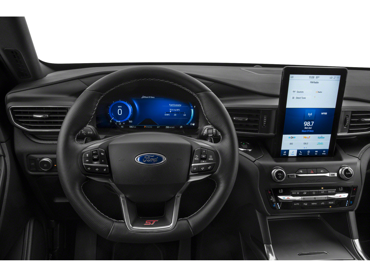 THIS VEHICLE HAS THE FOLLOWING FEATURES AND OPTIONS:Equipment Group 401A, Ford Co-Pilot360 Assist+ (Evasive Steering Assist, Intelligent Adaptive Cruise Control, and Speed Sign Recognition), Premium Technology Package (10.1 LCD Capacitive Portrait Touchscreen, 2 Additional Speakers, and Leather Htd/Ventilated Sport Captain's Chairs), ST High Package (110V/150W AC Power Outlet, 360-Degree Camera w/Split View, Active Park Assist 2.0, Auto-Dimming Rearview Mirror (Interior), FordPass Connect, Forward Sensing System, Front Rain-Sensing Wipers, Hands-Free Foot-Activated Liftgate, Memory Driver's Seat, Power Tilt/Telescoping Steering Column, Radio: B&O Sound System by Bang & Olufsen, Reverse Brake Assist, Second Row Heated Seats, Sideview Mirrors w/Gloss Black Caps, SYNC 3 Communications & Entertainment System, Third Row PowerFold (Folds Flat), Universal Garage Door Opener (UGDO), Voice-Activated Touchscreen Navigation System, and Wireless Charging Pad), ST Street Pack (Performance Front & Rear Brakes and Wheels: 21 Aluminum), 4WD, 20 Machined Aluminum w/Painted Pockets Wheels, 3.58 Non-Limited-Slip Rear Axle Ratio, 3rd row seats: bench, 4-Wheel Disc Brakes, 6 Speakers, ABS brakes, Air Conditioning, Alloy wheels, AM/FM radio: SiriusXM, AM/FM Stereo, Auto High-beam Headlights, Automatic temperature control, Brake assist, Bumpers: body-color, Cargo Area Management System, Compass, Delay-off headlights, Driver door bin, Driver vanity mirror, Dual front impact airbags, Dual front side impact airbags, Electronic Stability Control, Emergency communication system: SYNC 3 911 Assist, Exterior Parking Camera Rear, Four wheel independent suspension, Front & Second Row Floor Liners (16B), Front anti-roll bar, Front Bucket Seats, Front Center Armrest, Front dual zone A/C, Front fog lights, Front reading lights, Fully automatic headlights, Heated door mirrors, Heated front seats, Heated steering wheel, Illuminated entry, Knee airbag, Leather steering wheel, Low tire pressure warning, Occupant sensing airbag, Outside temperature display, Overhead airbag, Overhead console, Panic alarm, Passenger door bin, Passenger vanity mirror, Power door mirrors, Power driver seat, Power Liftgate, Power passenger seat, Power steering, Power windows, Rear air conditioning, Rear anti-roll bar, Rear reading lights, Rear window defroster, Rear window wiper, Remote keyless entry, Security system, SelectShift Capability w/Paddle Shifters, Speed control, Speed-sensing steering, Speed-Sensitive Wipers, Split folding rear seat, Spoiler, Sport steering wheel, Steering wheel mounted audio controls, SYNC 3/Apple CarPlay/Android Auto, Tachometer, Telescoping steering wheel, Tilt steering wheel, Traction control, Trip computer, Twin Panel Moonroof, and Variably intermittent wipers.