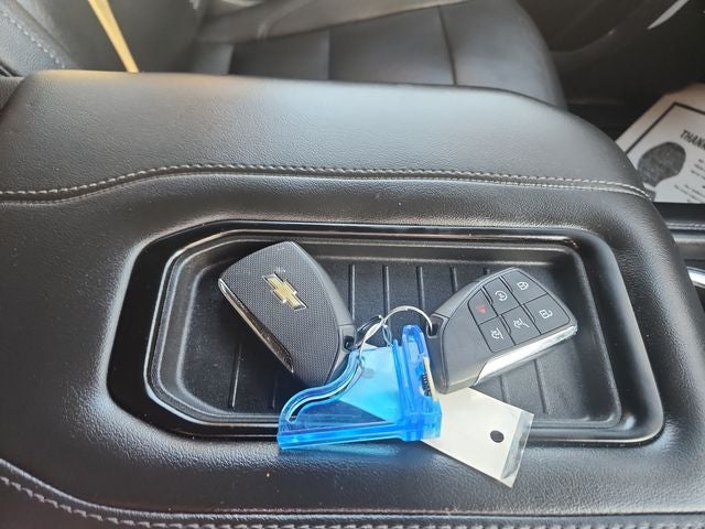 THIS VEHICLE HAS THE FOLLOWING FEATURES AND OPTIONS:Preferred Equipment Group 1LT (1st & 2nd Row Color-Keyed Carpeted Floor Mats, Auto-Dimming Inside Rear-View Mirror, Bose 9-Speaker Stereo Audio System Feature, Bright Front & Rear Door Sill Plates, Color-Keyed Carpeting Floor Covering, Driver & Front Outboard Passenger Airbags, Enhanced Driver Information Center, Floor Console w/Storage Area, Hands-Free Rear Power Programmable Liftgate, Infotainment Display, LED Daytime Running Lamps, Memory Settings for Driver, Remote Start, SiriusXM Radio w/360L, Universal Home Remote, Wireless Charging, and Wrapped Steering Wheel), 4WD, Jet Black Leather, 10-Way Power Driver & Passenger Seat Adjusters, 2nd Row Manual Bucket Seats, 3.23 Rear Axle Ratio, 3rd row seats: split-bench, 4-Wheel Disc Brakes, 9 Speakers, ABS brakes, Air Conditioning, Alloy wheels, AM/FM radio: SiriusXM with 360L, Apple CarPlay/Android Auto, Auto High-beam Headlights, Auto-dimming Rear-View mirror, Automatic temperature control, Brake assist, Bumpers: body-color, Compass, Delay-off headlights, Deleted 3 Years of Remote Access, Driver door bin, Driver vanity mirror, Dual front impact airbags, Dual front side impact airbags, Electronic Stability Control, Emergency communication system: OnStar and Chevrolet connected services capable, Four wheel independent suspension, Front anti-roll bar, Front Bucket Seats, Front Center Armrest, Front dual zone A/C, Front High-Back Reclining Bucket Seats, Front reading lights, Fully automatic headlights, Garage door transmitter, Heated door mirrors, Heated Driver & Front Passenger Seats, Heated front seats, Illuminated entry, Leather-Appointed Seat Trim, Low tire pressure warning, Memory seat, Navigation System, Occupant sensing airbag, Outside temperature display, Overhead airbag, Overhead console, Panic alarm, Passenger door bin, Passenger vanity mirror, Power door mirrors, Power driver seat, Power Liftgate, Power passenger seat, Power steering, Power windows, Premium audio system: Chevrolet Infotainment 3 Premium, Premium Smooth Ride Suspension, Radio: Chevrolet Infotainment 3 Premium System, Rain sensing wipers, Rear air conditioning, Rear anti-roll bar, Rear reading lights, Rear seat center armrest, Rear window defroster, Rear window wiper, Remote keyless entry, Roof rack: rails only, Security system, Speed control, Speed-sensing steering, Split folding rear seat, Spoiler, Steering wheel mounted audio controls, Tachometer, Telescoping steering wheel, Tilt steering wheel, Traction control, Trip computer, Variably intermittent wipers, Voltmeter, and Wheels: 18 x 8.5 Bright Silver Painted Aluminum.