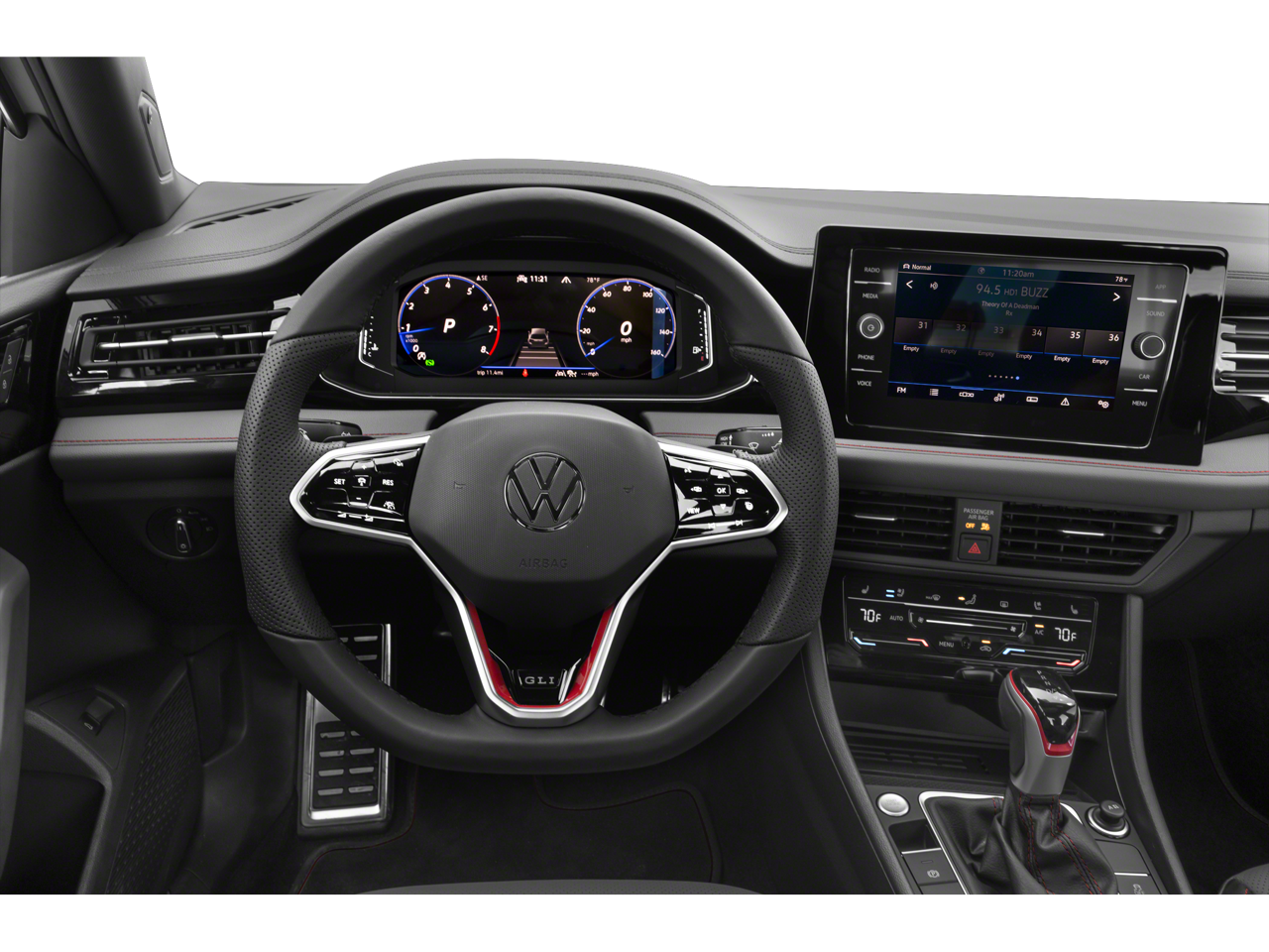 The Jetta GLI's sporty yet sophisticated design is enhanced by sleek exterior details, including body-color bumpers, heated power mirrors, and automatic LED headlights. Step inside and you'll be surrounded by a wealth of premium amenities, from the heated steering wheel and dual-zone climate control to the Fender Premium Audio system and panoramic sunroof.